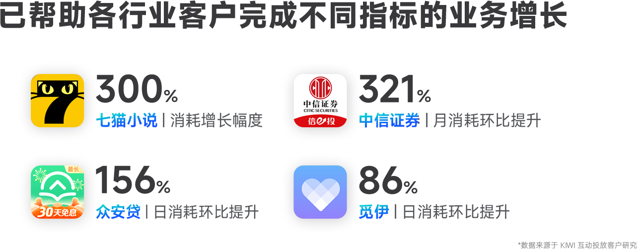 KIWI 互动打造了专注手机生态的 AIGC 全链路营销平台,通过批量创建广告系列、AI智能拓词,AI创意素材生成等功能让广告投放更加简单高效!